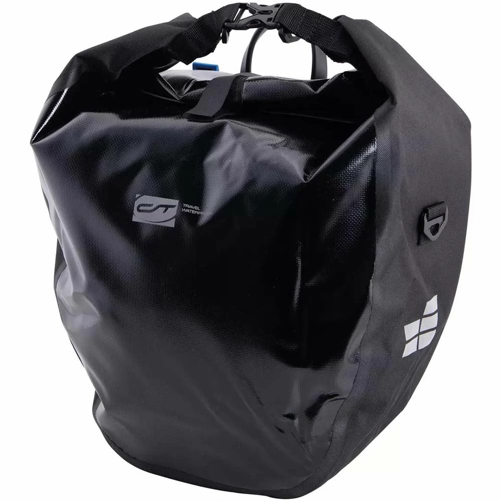Bag Travel Waterproof är en vattentät packväska som rymmer ca 20 liter. Väskan monsteras på sidoställ och är perfekt för cykelpendlare. Väskan är utrustad med det universiella Rixen & Kaul-fästsystemet vilket möjliggör en enkel och smidig montering på alla vanliga ställ.