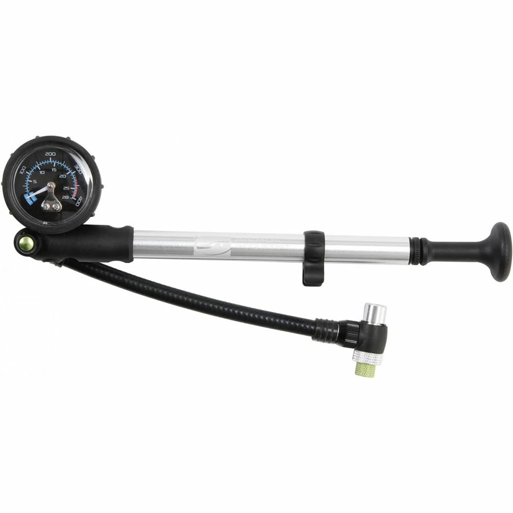 Suspension Pump ShockRocket är pumpen för dig som vill justera luftfjädringelementen på din mountainbike efter din vikt och körstil. Med ett maximalt lufttryck på 28 bar (400psi) gör denna pump exakt det den lovar. Pumpen möjliggör känslig finjustering väldigt enkelt med tryckreglering med hjälp av luftutlösningsknappen. Tack vare 2 stegssystemet i pumpens Schrader-ventil så förloras inget tryck.