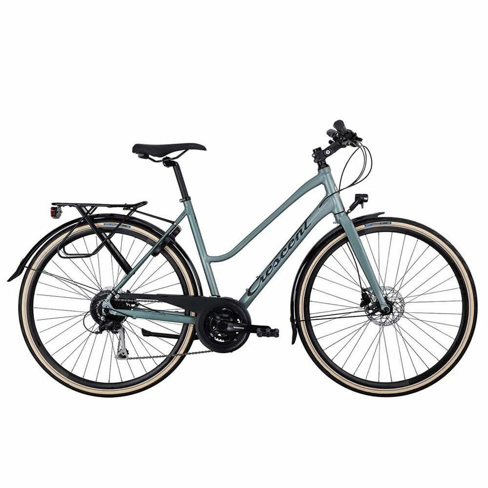 Cresent Holma är en hybridcykel av hög kvalitet som är fullt utrustad med allt du behöver. Den är ett perfekt val för dig som vill ha en stabil pendlings- eller trekkingcykel. Den är försedd med skärmar, kedjeskydd, stöd, godkänt lås och pakethållare med klicksystemet AVS så att du enkelt kan fästa väskor och korgar.