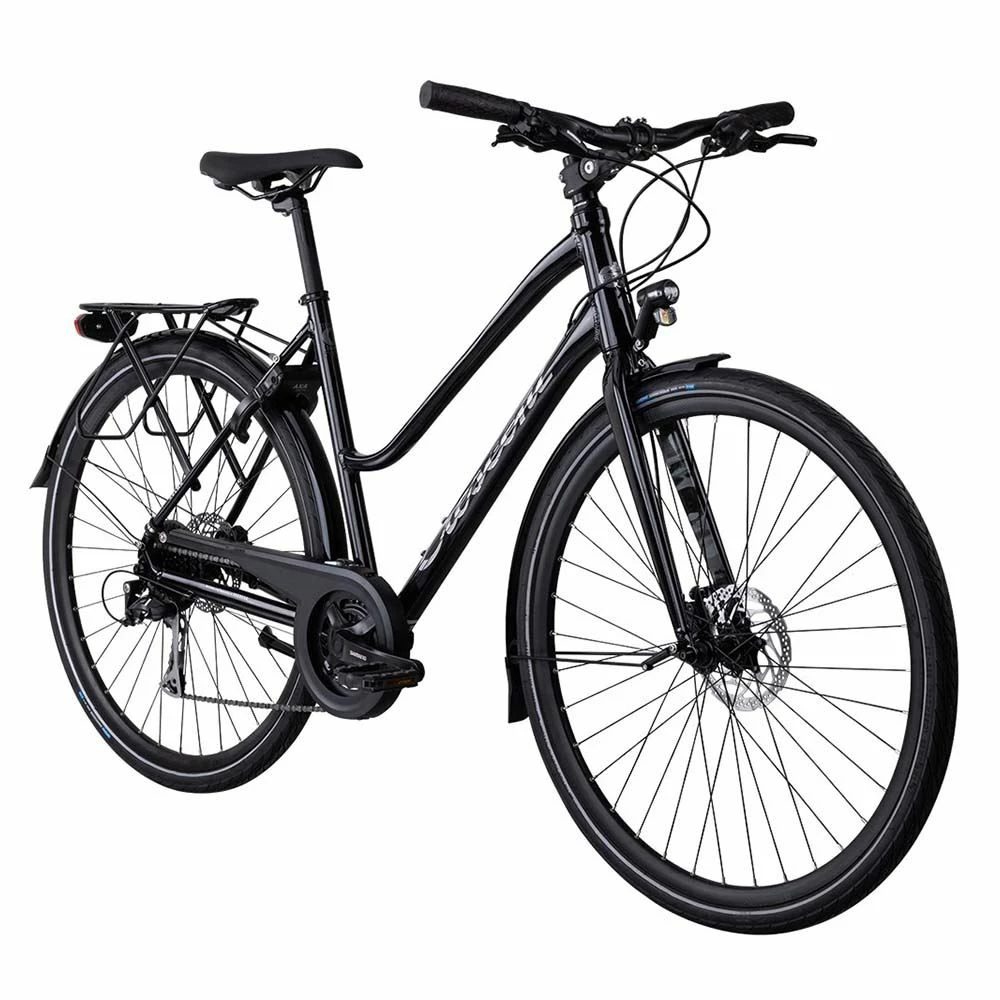 Cresent Holma är en hybridcykel av hög kvalitet som är fullt utrustad med allt du behöver. Den är ett perfekt val för dig som vill ha en stabil pendlings- eller trekkingcykel. Den är försedd med skärmar, kedjeskydd, stöd, godkänt lås och pakethållare med klicksystemet AVS så att du enkelt kan fästa väskor och korgar.
