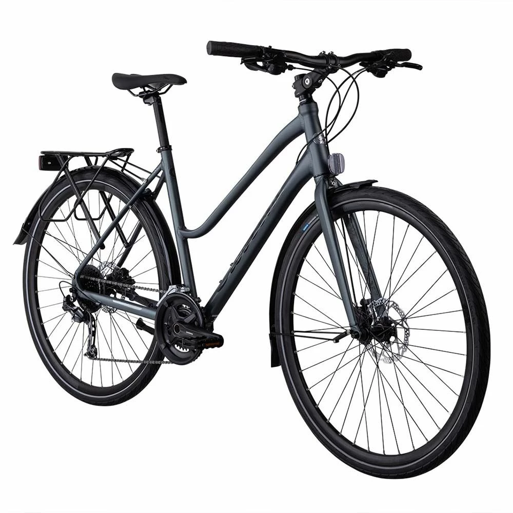 Nikka är en 18-växlad hybridcykel från Crescent som kommer med en justerbar styrstam som bidrar till att du smidigt kan justera sittställningen efter behov. Tack vare de hydrauliska bromsarna och de mönstrade däcken så kan du ta dig fram på varierade underlag så som stig och asfalt. Med Nikka är du redo för utmanande backar och och nerkittlande nerförsbackar med det breda växelspannet på 18 växlar. Växelgruppen består av Shimano Deore som i grrund och botten används på mountainbikes men som funkar lika fint på hybrider. Deore klarar av hårda tag och är utvecklade med Sveriges tuffa klimat i åtanke. Sist men inte minst så kommer pakethållaren med det smarta klicksystemet AVS vilket möjliggör enkel komplettering av väska, korg eller liknande – perfekt vid pendling och/eller vardagssysslor.