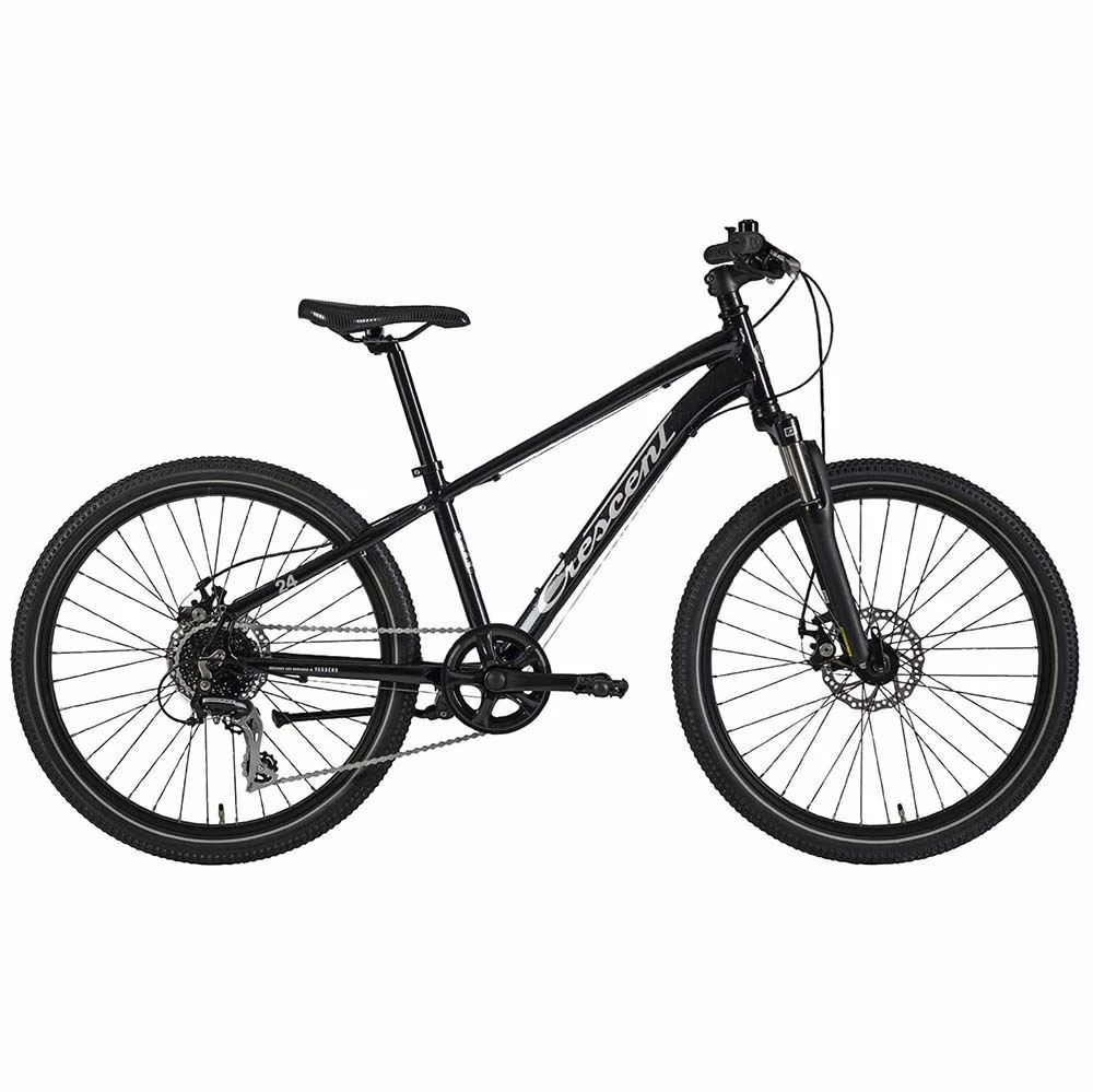 Vale 24” är juniorcykeln för dig som är mellan 130-150 cm lång och söker efter en välutrustad mountainbike. Cykeln kommer med en dämpad SonTour-gaffel som förenklar hårda tag med körning i ojämn terräng. Körning över stock och sten är inte längre ett problem med denna MTB från Crescent.