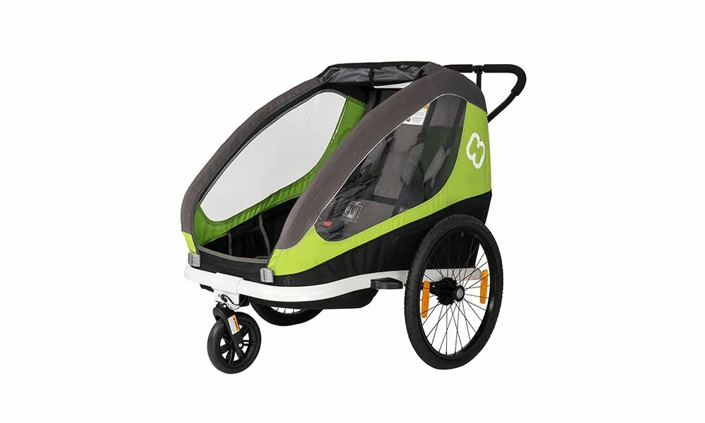 Hamax Traveller är en kvalitetsvagn som funkar lika bra som cykelnvagn som promenadvagn. Vagnen är designad för att rymma två barn och det finns också gott om utrymme för övrig packning. När du inte använder vagnen tar den lite plats när du enkelt fäller ihop den.