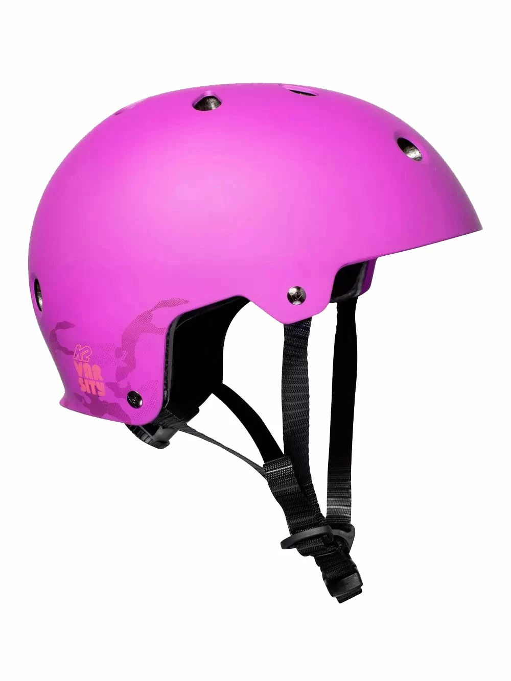 K2 Varsity det här är en skyddande hjälm i en matt färg och med snyggt, grafiskt tryck. Hjälmen har designas med ett slitstarkt ABS-skal, EPS-foder, Ratchet Fit System och anpassningskuddar. En hjälm som du kan lita på vare sig du åker inlines på gatan, cyklar i skogen eller åker skateboard på rampen.