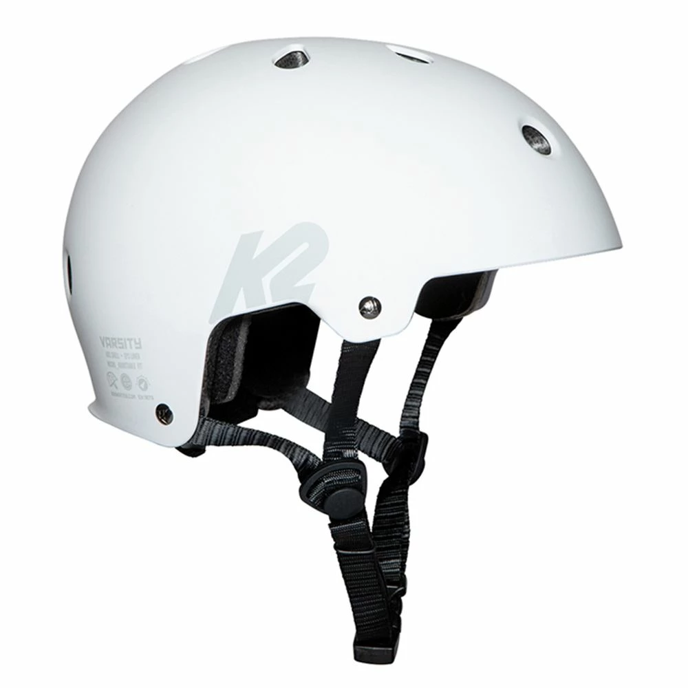 K2 Varsity det här är en skyddande hjälm i en matt vit färg med ett snyggt grafiskt tryck på sidan. Hjälmen har designas med ett slitstarkt ABS-skal med ett EPS-fodersom är ett lager skydd som absorberar slag och skyddar huvudet mot skallskador. Med hjälp av Ratchet Fit System som också är integrerat i hjälmen kan du enkelt ställa in passformen. Detta är helt enkelt en hjälm som du kan lita på vare sig du åker inlines på gatan, cyklar i skogen eller åker skateboard på rampen.