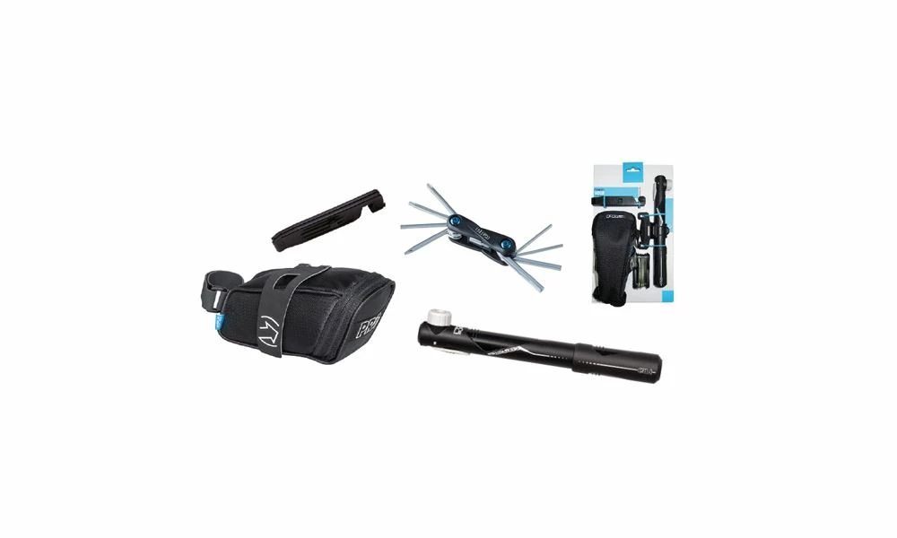 Pro Kombipack innehåller allt du behöver för att göra enklare justeringar och lagningar när du är ute och cyklar. Minipump, multiverktyg och däckavtagare i snygg och stilren design packas enkelt ner i den smarta sadelväskan som man sedan fäster under sadeln. Det enda man behöver komplettera med är en cykelslang passande för din cykel för att vara redo när punkteringen slår till!