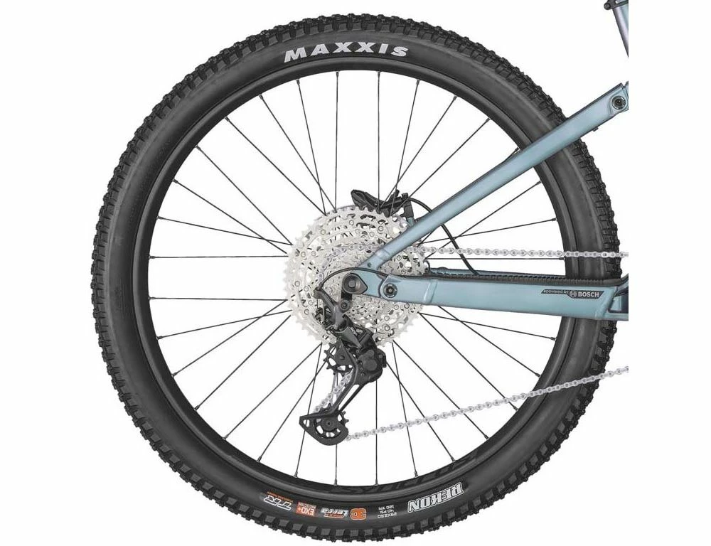 Marzocchi framgaffeln tillsammans med FOX Float bak ger dämpning i världsklass och bidrar till att Strike e-RIDE rör sig runt i skogen obehindrat. Hög fart, tuffa passager, uppför eller nerför – ingen utmaning är för tuff. Båda dämparna har justerbar rebound, lockout och 3-fasta lägen som på ett enkelt sätt styrs via TwinLoc Remote på styret. Denna eldrivna cykel nöjer sig inte med annat än det bästa, därav sitter en Bosch Performance CX motor med ett integrerat 625 Wh batteri för flera timmars pedalpower. Det hela kan du kontrollera och inspektera via Purion displayen, från assistansnivåer till batteri. Motorn är mittplacerat och har låg ljudnivå.