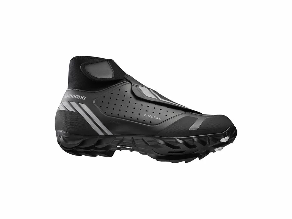 Shimano MW500 MTB är skon för dig som inte tvekar på en runda i skogen trots vinterns ihärdiga kyla! Med funktioner såsom DRYSHIELD®, fleeceliner och neoprenetäckta anklar så kommer denna sko hålla dig varm långt in i vintersäsongens mörker. Självklart är de supersmidiga att spänna och går även lätt att justera under turens gång. Tåliga gummidubbar undertill ger dig klockrent grepp även när du behöver leda cykeln och reflexerna på sidan gör dig synlig.