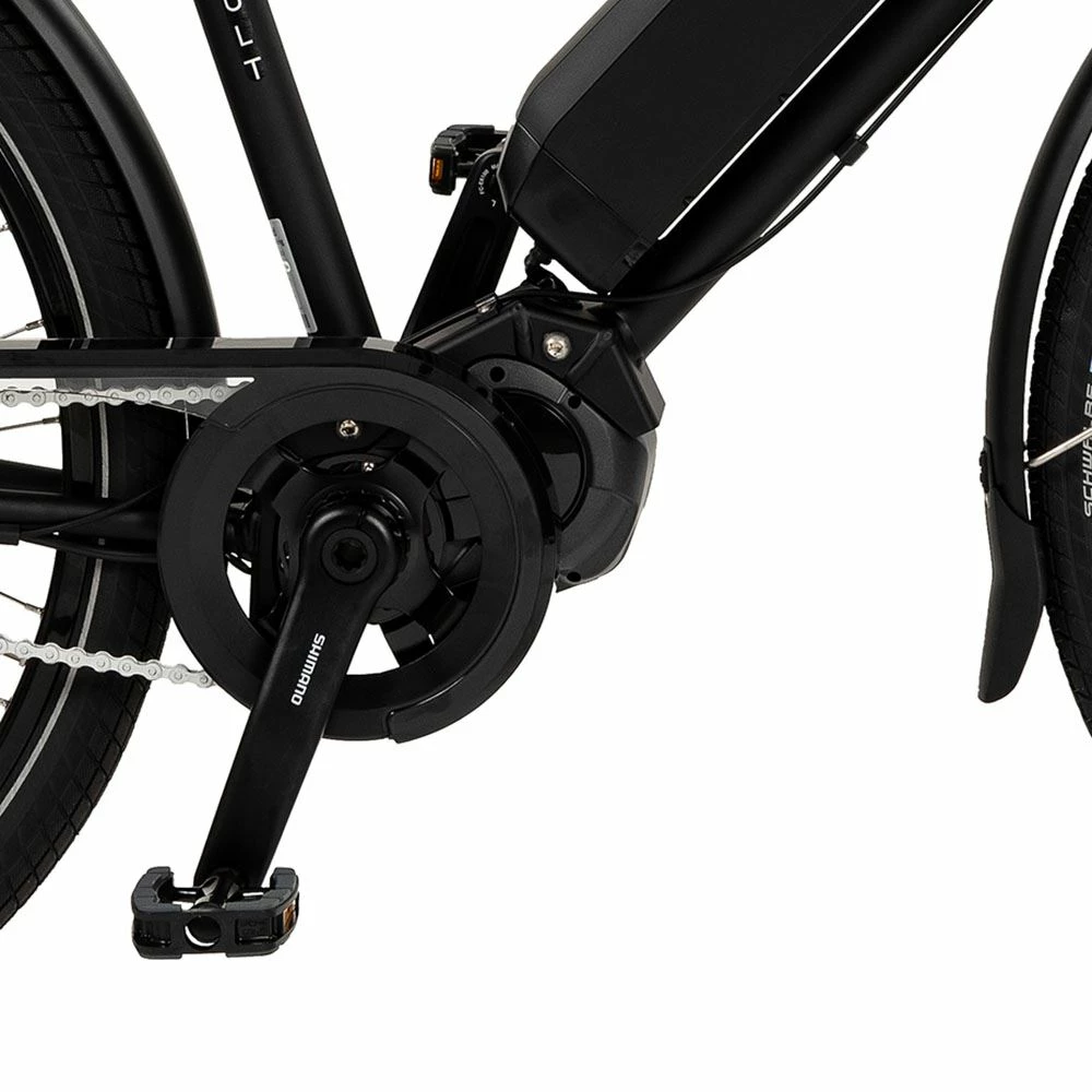 Denna härliga elcykel kommer med en rammonterad elmotor från Shimano med en låg vikt på 2.88kg som är designad för att kunna ge en optimal kraftöverföring. Lithiumjonbatteriet som också är från Shimano är av hög kvalitet med en mycket lång livslängd.