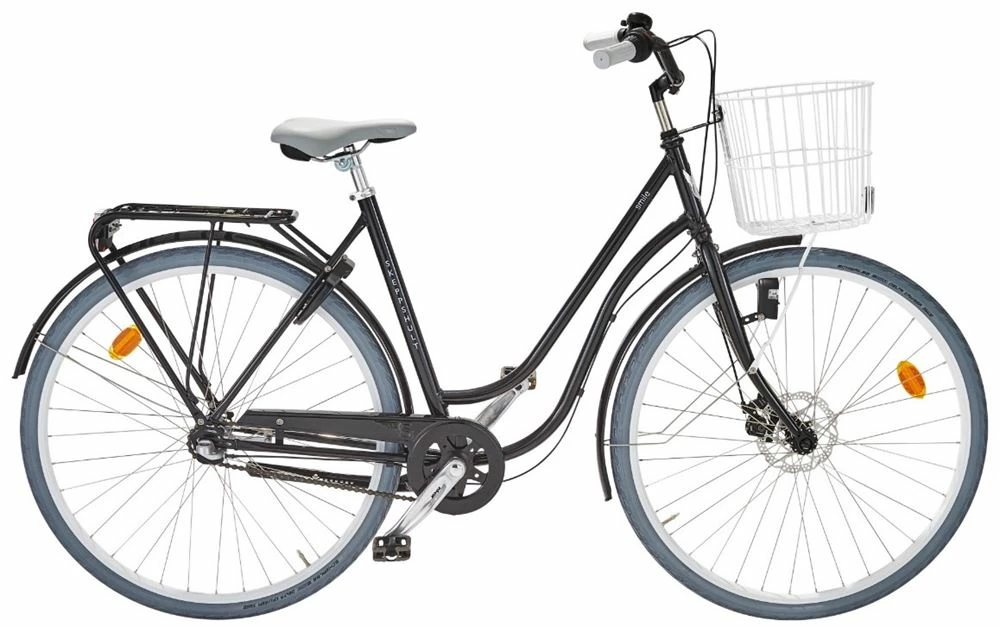 - Medföljande tillbehör: Skärmar, pakethållare, korg och lås