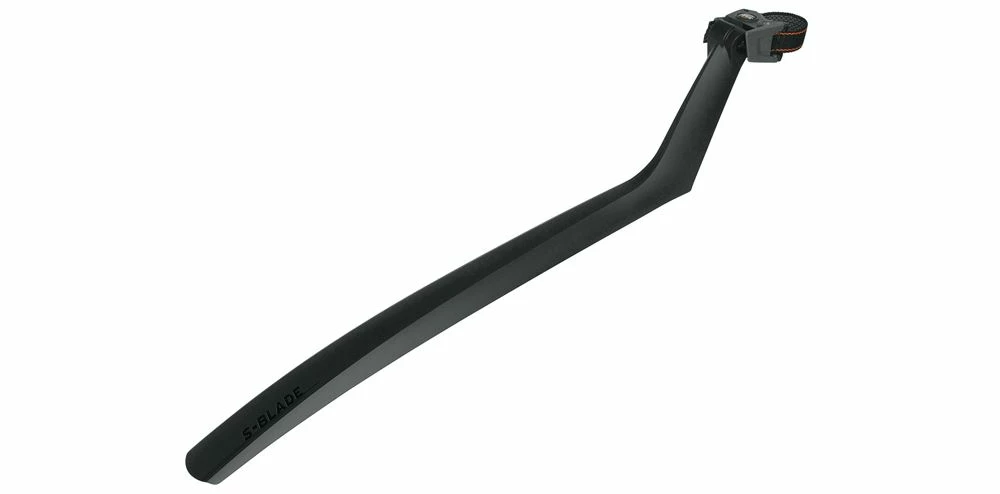 SKS S-BLADE är en bakskärm för ambitiösa cyklister som vill slippa ha en blöt rygg om det skulle börja regna på rundan. Med en smart snabbkoppling kan skärmen monteras på praktiskt taget alla racercyklar och den kan dessutom justeras till önskad vinkel.