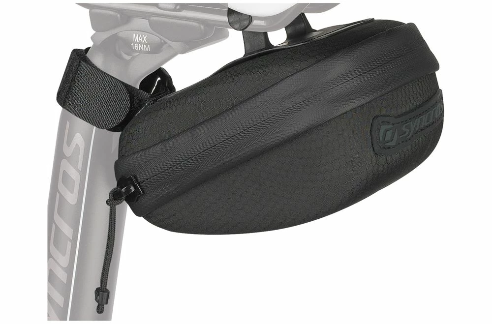 Syncros Turtle 450 är en sadelväska erbjuder en bred variation av möjligheter och dessutom två olika sätt att fästa in väskan under sadeln. Utrustade med vattenavstötande dragkedjor och lätta slitstarkt material. De här egenskaperna gör väskorna enkla att använda och pålitliga att skydda sin packning. På insidan sitter elastiska band för att fixera verktyg på insidan.